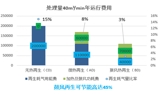 鼓風熱再生 l 冷卻所需的氣耗及加熱器、鼓風機功耗折合電費為11萬元 |