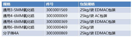 l 氧化鋁和分子篩混合使用時,分子篩不要超過1/3 |
